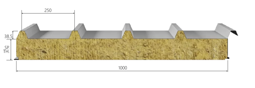 EUROFIRE.S è il pannello metallico autoportante grecato con isolante in lana di roccia, destinato alle coperture inclinate con pendenza non inferiore al 7%.