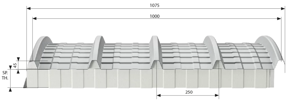 Lo sviluppo massimo della lamiera superiore è di 7000 mm comprensivo degli overlap laterali (tale sviluppo è variabile in base al raggio di curvatura).