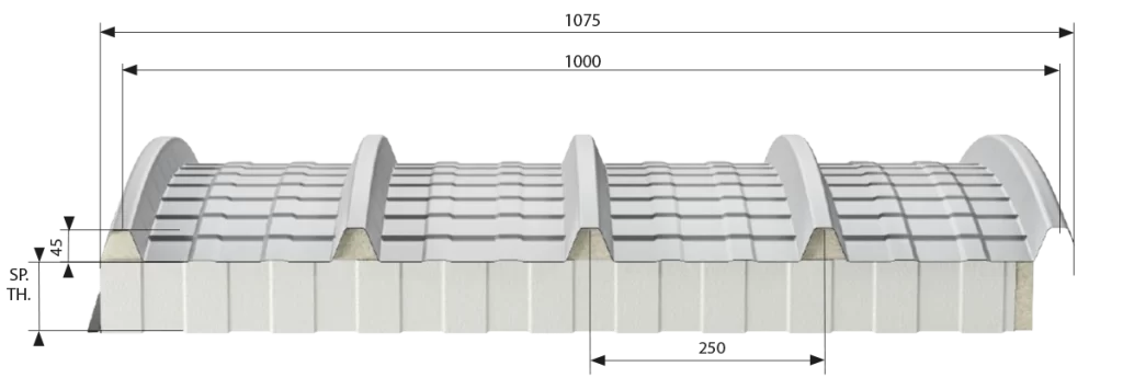 Il pannello sandwich ISOCINQUEFLEX® variabile di Lattonedil rappresenta la soluzione ideale per coperture aventi strutture prefabbricate a volta in ferro o in cemento. Il progettista può personalizzare in base alle proprie esigenze sia il raggio di curvatura che le prestazioni termiche. A seconda della zona climatica e delle condizioni ambientali interne il committente dovrà scegliere lo spessore più idoneo a fronteggiare possibili formazioni di condense.