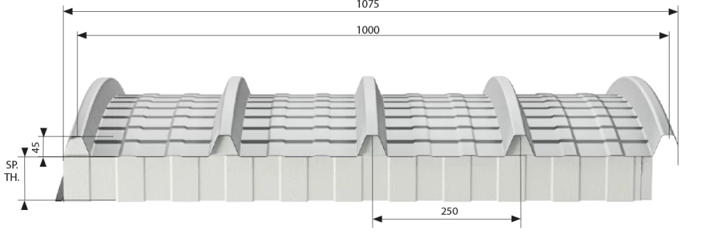 Il pannello sandwich ISOCINQUEFLEX® variabile di Lattonedil rappresenta la soluzione ideale per coperture aventi strutture prefabbricate a volta in ferro o in cemento. Il progettista può personalizzare in base alle proprie esigenze sia il raggio di curvatura che le prestazioni termiche. A seconda della zona climatica e delle condizioni ambientali interne il committente dovrà scegliere lo spessore più idoneo a fronteggiare possibili formazioni di condense.
