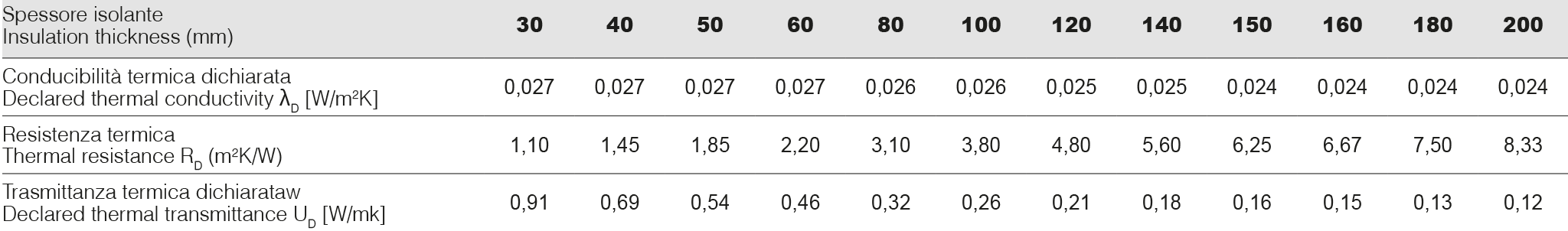 | Densità isolante | 31 ± 2 kg/m3 |