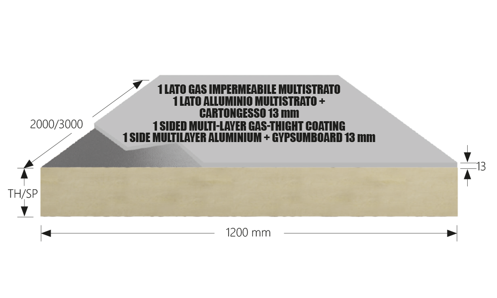 ISOTT Gas / Alluminio+Cartongesso BV è un sistema accoppiato costituito da pannello in schiuma PIR espansa rigida, rivestito su un lato con gas impermeabile multistrato e sull’altro con alluminio multistrato e freno al vapore integrato sul lato caldo, accoppiato a una lastra di cartongesso da 13 mm.