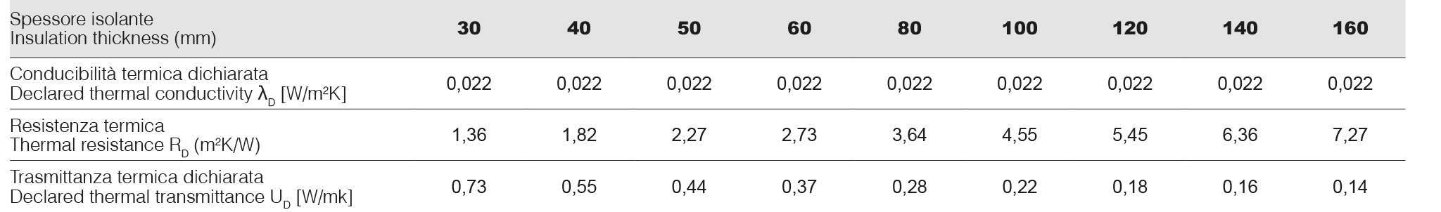 | Massa volumica pannello (valore medio comprensivo del peso dei rivestimenti) – ρ | 36 ± 1,5 kg/m3 |