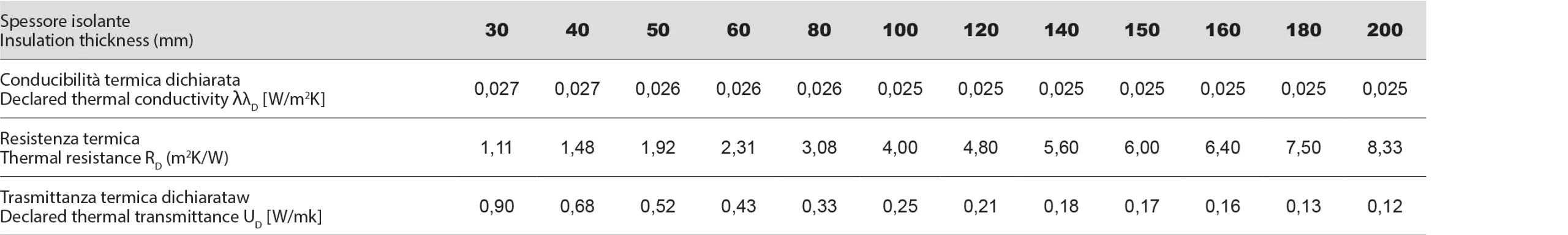 Massa volumica pannello – ρ (Valore medio comprensivo del peso dei rivestimenti): 45 ± 2 kg/m3