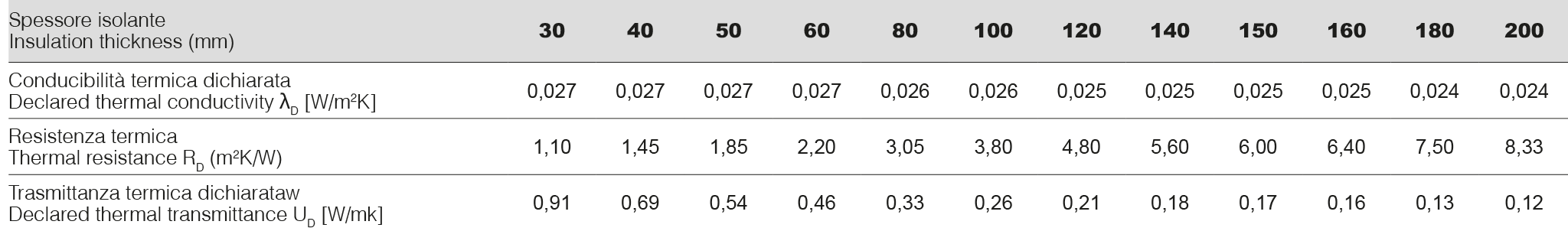 Fattore di resistenza alla diffusione del vapore (EN 12086)μ = 33 ± 2